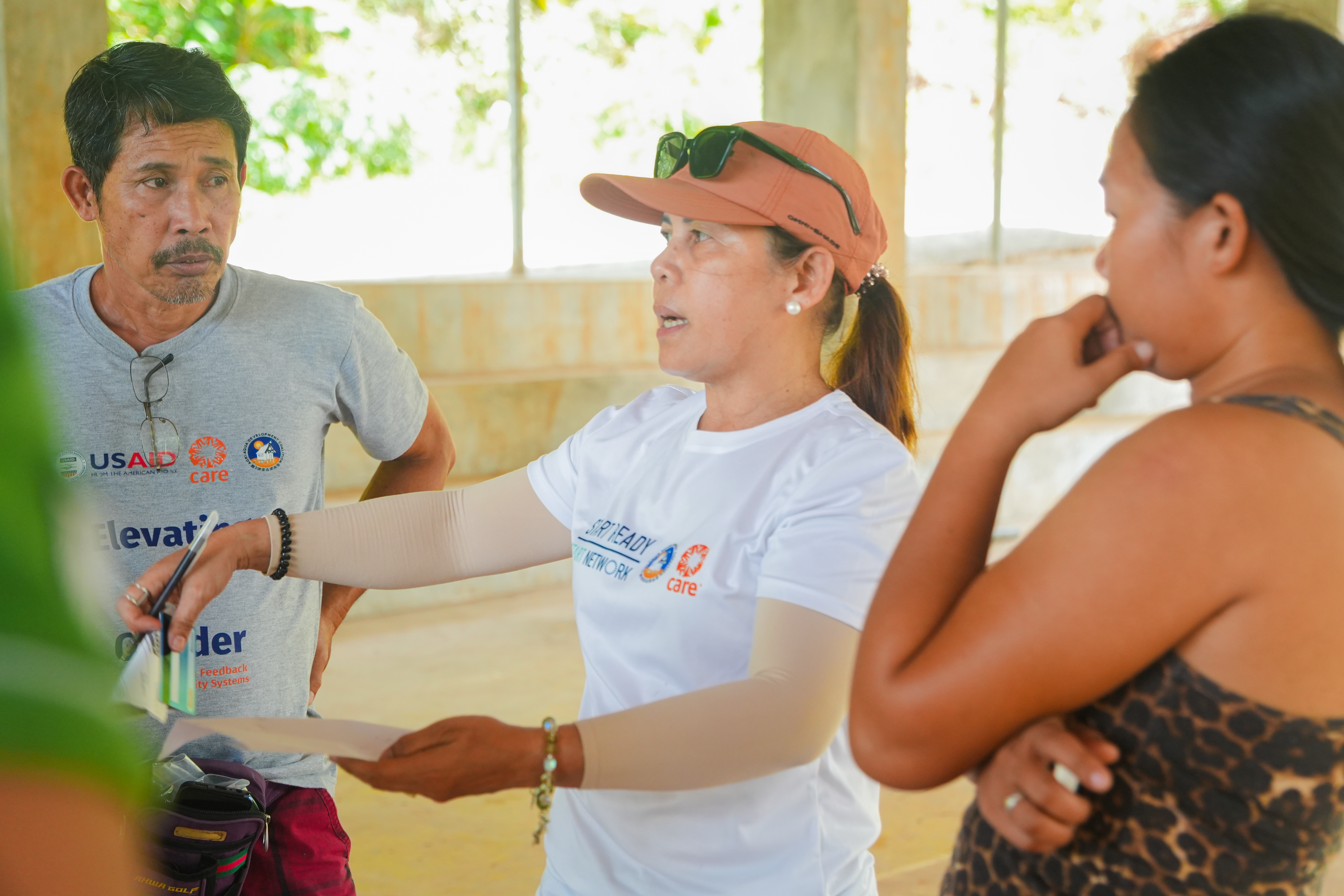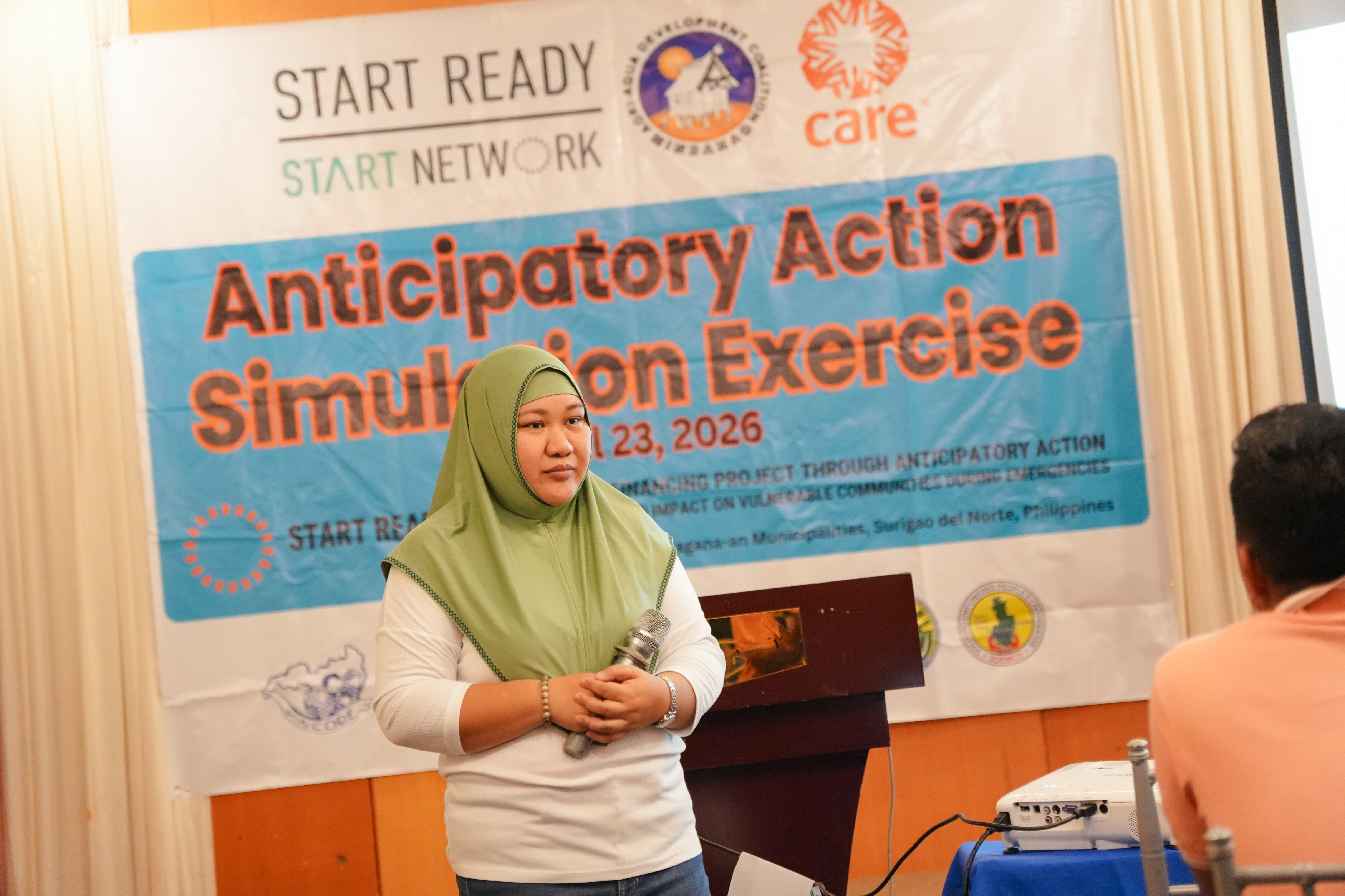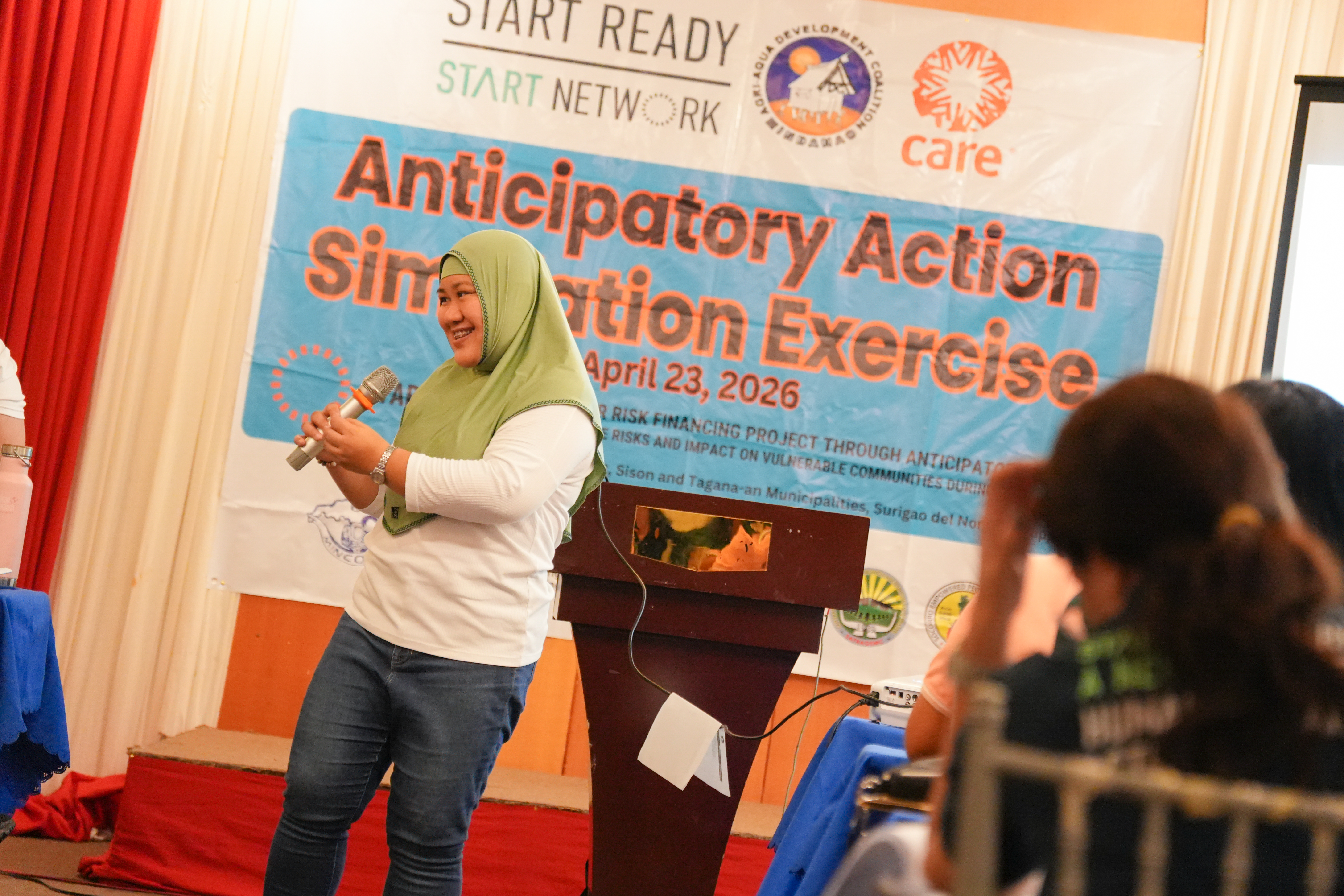 On April 24, a day after the SIMEX, a Post-SIMEX Assessment was immediately conducted to gather insights and recommendations to improve the implementation of anticipatory actions in the island barangays. MINCODE Executive Director, Ms. Raizsa Mae Anayatin, facilitated the Post-SIMEX Assessment which was actively participated by Start Network, CARE Philippines, AADC, MASS-SPECC, SAFRAGEMC, LGU representatives, partner household representatives, store owner representatives, and SIMEX Observers from PDRRMO, MDRRMO, MSWDO, and other volunteers. They shared the challenges and gaps they observed, as well as strategies and solutions made to address immediate concerns. The recommendations and suggestions generated from the SIMEX and the post-SIMEX Assessment will serve as inputs to improve the implementation of Start Ready Project and contribute to increasing community preparedness for typhoons in Surigao del Norte.